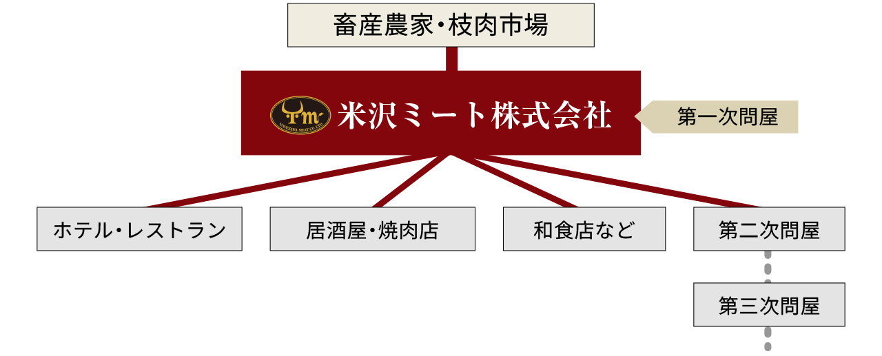 米沢ミートは、生産者(畜産農家)や枝肉市場と最初に繋がりを持つ第一次問屋です。